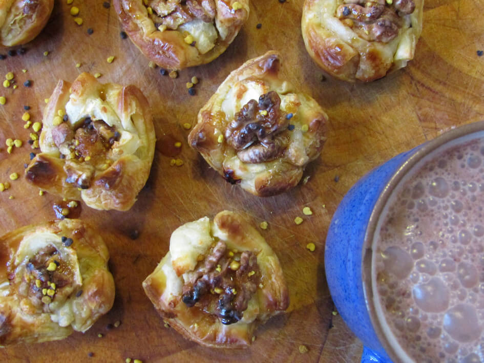 We maken heerlijke borrelhapjes met geitenkaas, walnoten, vijgen, goji bessen, bijenpollen en boekweithoning. Heerlijke zoet/hartige hapjes die op zichzelf al een feest zijn! Daarnaast een recept voor supergezonde cacaomelk met maca poeder, chiazaadjes en wederom boekweithoning. Deze kan prima koud of warm gedronken worden. Iets met alcohol? Een likeurtje erbij is ook lekker. Wel iets minder gezond, maar we zien het door de vingers! 🙂